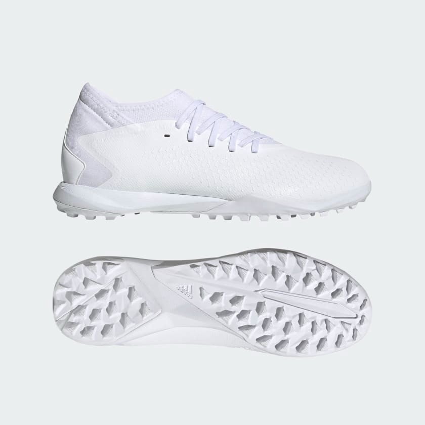 التحكم + الدقة = الثقة. عندما يكون الهدف في مرمى البصر، استهدف الكمال مع حذاء adidas Predator Accuracy. يتضمن الجزء العلوي من القماش المطلي لهذا الحذاء نسيجًا عالي الدقة في منطقة التأثير. مزيج من العناصر والطباعة المنقوشة، وهو موجود لمساعدتك في التحكم الكامل في تمريراتك وتسديداتك. في الأسفل، نعل خارجي مطاطي مضلع يبقيك في وضع اللعب على العشب الصناعي. مصنوع من مجموعة من المواد المعاد تدويرها، ويحتوي الجزء العلوي على محتوى مُعاد استخدامه بنسبة 50% على الأقل. يمثل هذا المنتج أحد حلولنا للمساعدة في إنهاء النفايات البلاستيكية.