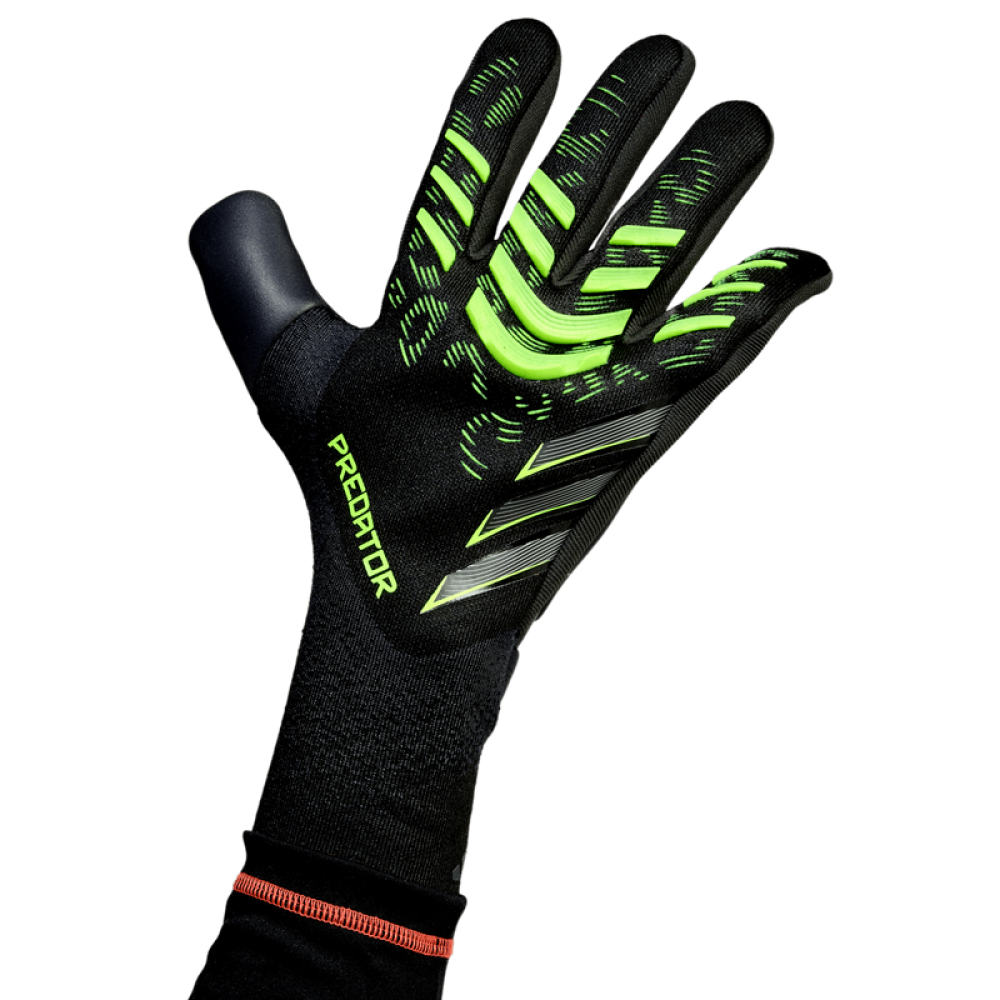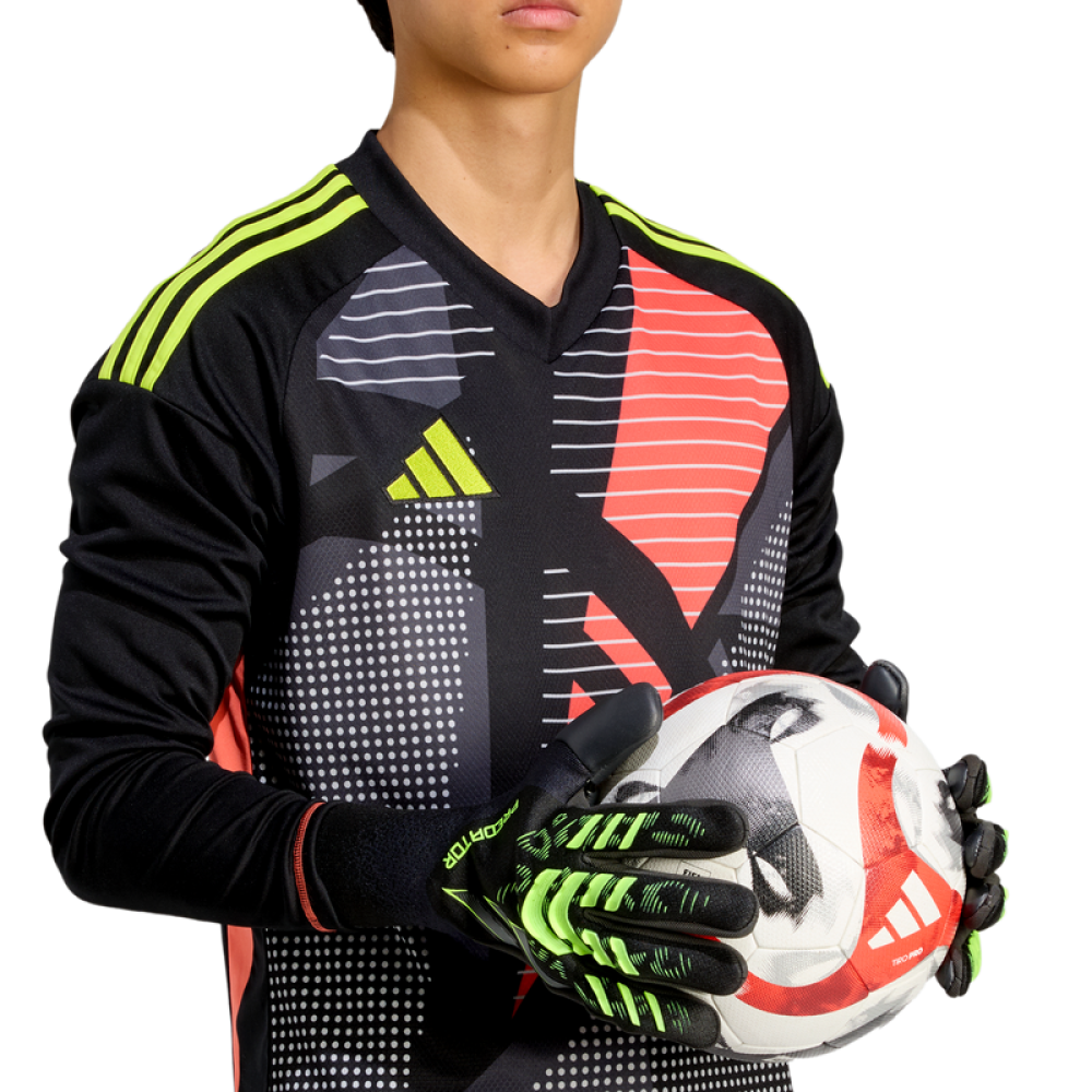قفاز حارس المرمى الرائع من adidas Predator Pro من مجموعة Electric Stealth Victory يتميز بتصميم أنيق مزين بلمسات صفراء كهربائية نابضة بالحياة. إنه الخيار الأول لحراس المرمى الذين يبحثون عن أقصى قدر من التحكم والتكنولوجيا المتقدمة والراحة الممتازة. تم تطوير هذا القفاز بالتعاون الوثيق مع حراس المرمى المحترفين، ويتضمن ميزات متطورة. بفضل ملاءمته المثالية ودخوله المحسن، فإنه يضمن ثباتًا مثاليًا وقبضة أكثر أمانًا، معززة بمطاط URG 2.0 الأسود. عناصر سيليكون مصممة حديثًا ومثبتة تشريحيًا على ظهر اليد توفر دعمًا محددًا وتحكمًا استثنائيًا أثناء تخليص اللكمات. يجمع ظهر اليد المصنوع بالكامل من السيليكون بدون درزات بين المظهر العصري والأنيق والوظائف من الدرجة الأولى. بفضل بنيته فائقة المرونة، يزيل Predator جميع المقاومة غير الضرورية، مما يتيح ردود فعل سريعة للغاية في أي موقف من اللعبة. يسمح لك تصميمه خفيف الوزن بالبقاء مركزًا تمامًا على اللعبة دون أي تشتيت. مع قفاز adidas Predator، تحكم في المباراة ودافع عن مرماك بأداء عالي المستوى!